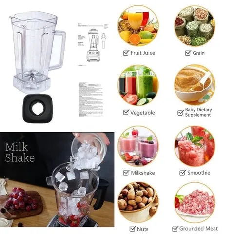 4. **سعة كبيرة:** يتميز الخلاط بوعاء سعة 2 لتر متعدد الوظائف، مما يجعله مناسبًا لتحضير العصائر بكميات كبيرة وسحق الثلج بكفاءة.